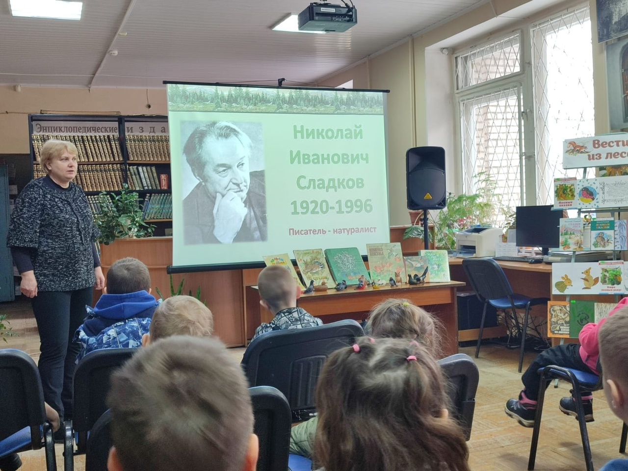 Воспитанники старшей группы "Буратино" посетили библиотеку. Ребята познакомились с жизнью русского писателя-натуралиста Ивана Сладкова. Узнали, что он всю жизнь изучал повадки животных и особенности их поведения. Писатель написал много познавательных рассказов и сказок, раскрывающих удивительный мир природы.