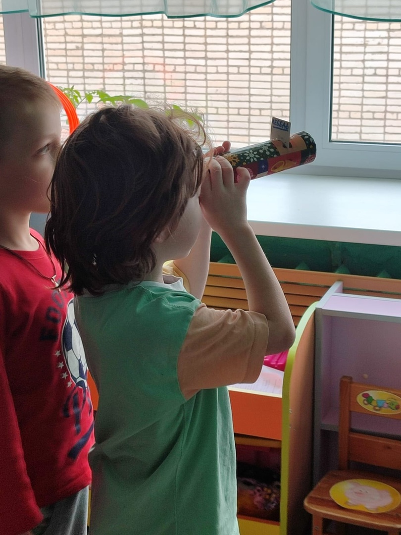 Также к ребятам приходил старший брат одной из воспитанниц группы, Захаров Владимир. Он словно добрый волшебник принёс не только знания о далёких мирах, но и искру любопытства, которую щедро разжёг в сердцах ребят. Вова с увлечением рассказывал о созвездиях, о том, как древние греки видели в этих скоплениях звезд очертания героев и мифических существ. Он говорил о Большой Медведице, легко узнаваемой по характерному ковшу. Затем Вова совершил настоящее чудо: он сделал сам космическое пространство с помощью обычного зонта. На внутренней стороне которого были изображены светящиеся звезды.