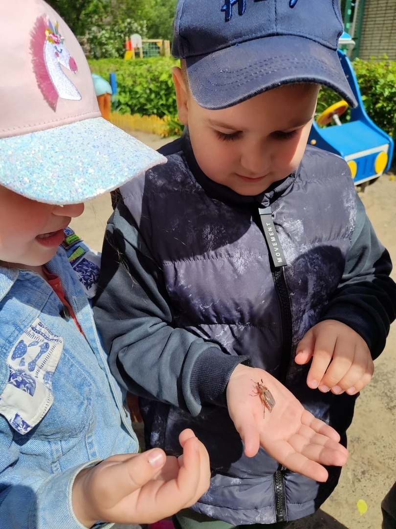 Сегодня объектом наблюдения на познавательной прогулке для ребят старшей группы "Буратино" стал майский жук. Дети рассмотрели его внешний вид: крылья, усики, лапки.