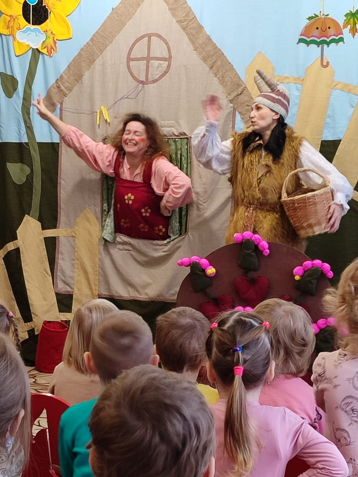 В гостях у ребят кукольный театр «Франт» со спектаклем «Как у Дуньки во дворе»! Дети стали не только зрителями, но и активными участниками: они с удовольствием помогали собирать яблоки, гусениц и кормить корову. Представление подарило массу положительных эмоций!