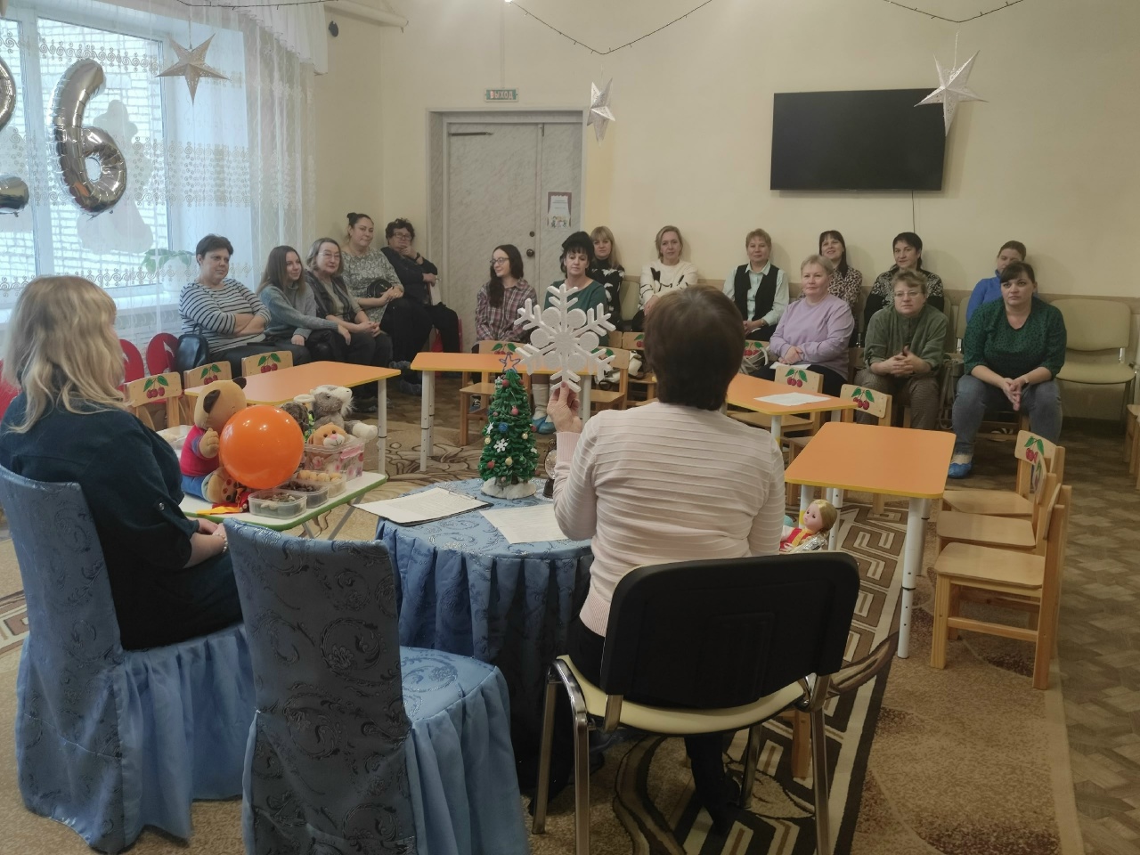 19 декабря в нашем детском саду гости, воспитатели из города и района. Не просто гости, а участники семинар-практикума по предметной среде ДОУ. Встреча называлась "Мастера дошкольного воспитания". Воспитатели приняли участие в игре- разминке, вспомнили ключевые смыслы ППС в детском саду, познакомились с минутками вхождения в новый день, думали, как красиво начать день в детском саду. А в заключении поработали в творческой мастерской и изготовили сувенирную варежку. Вобщем, вдохновились интересными практиками коллег, нашими воспитателями Малышевой На. В., Сабанцевой Н. Н, Нарышкиной Ю. В. Руководитель семинара ст. воспитатель Н. И. Степанова.