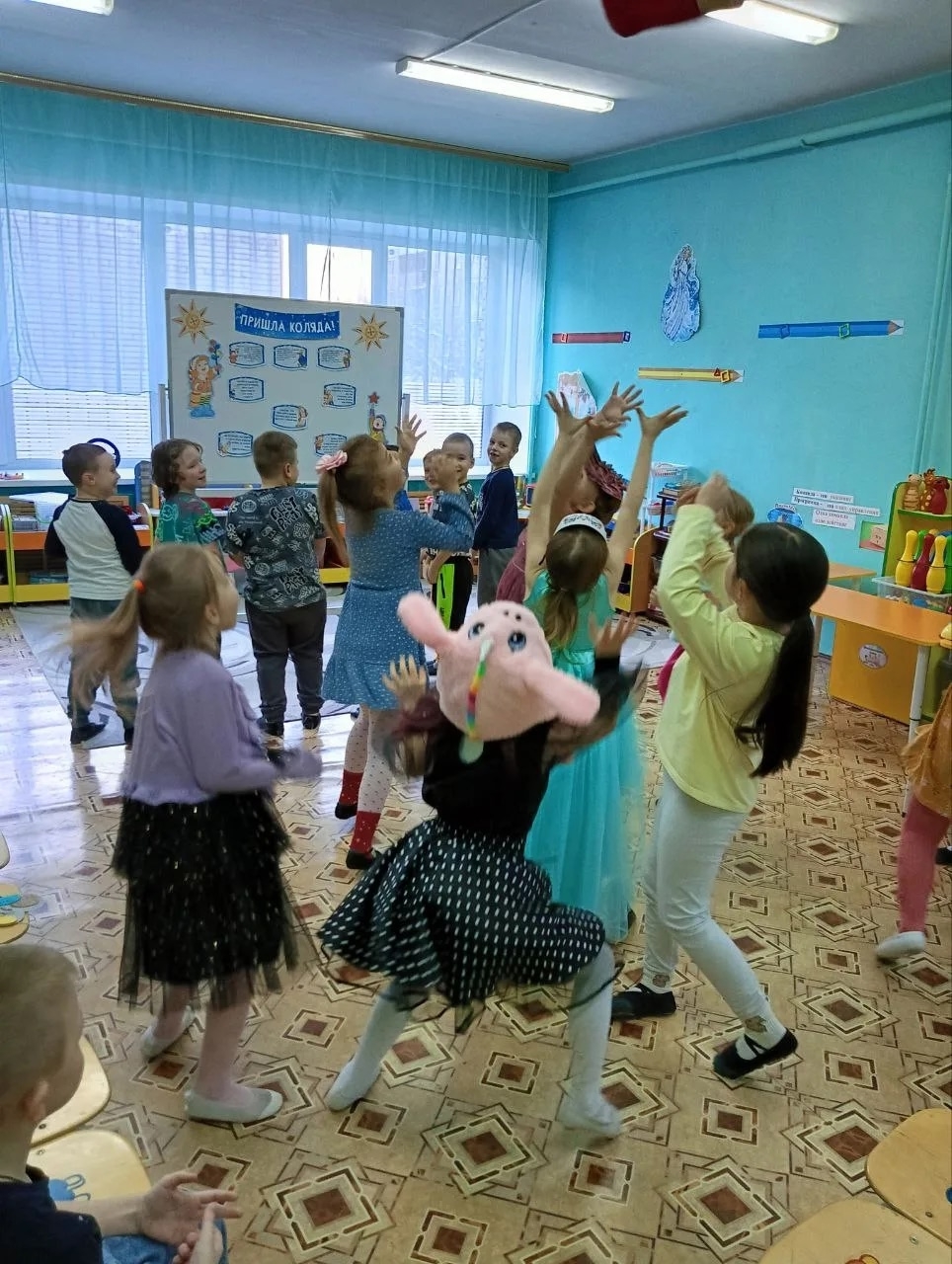 В подготовительной группе прошло волшебное зимнее развлечение - "Колядки". Ребята окунулись в атмосферу старинных русских традиций и народного веселья.